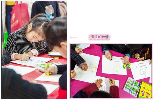 游戏时欢乐的氛围在此时安静下来,孩子们都专注的创作属于自己的作品。小小的画笔承载着大大的想象。