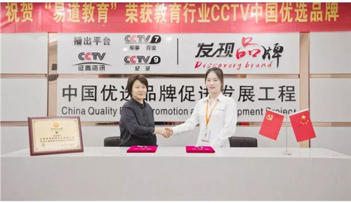 2018年6月,易道教育再获嘉奖,荣获“儿童教育行业CCTV中国优选品牌”称号。易道教育集团创始人祝宏慧女士与CCTV中国优选品牌官方代表签署合作协议。