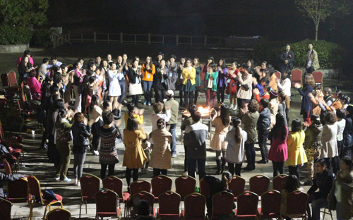 两天的会议流程结束后,2013年10月30日晚七点半,易道教育为与会校长们精心准备了一场欢乐盛宴,在黄山徽州文化园·华商山庄内空旷的场地上举办了轻松欢快的篝火晚会。